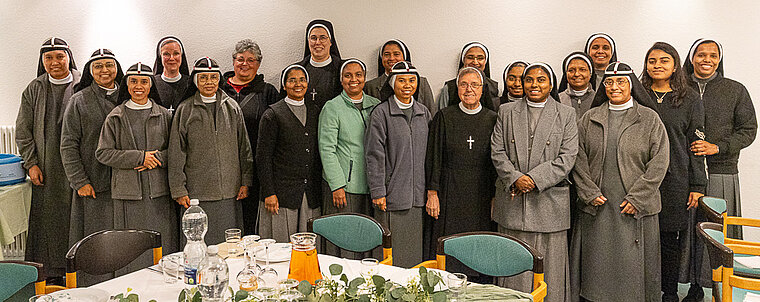 Nach dem Gottesdienst trafen sich die Thuiner Franziskanerinnen mit den indischen Franziskanerinnen-Klarissen, den Birgitten-Schwestern und weiteren Gästen im Pfarrheim von St. Johann.