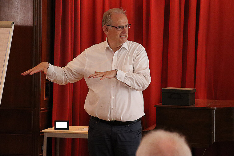 Die Besuchergruppe mit Priestern, Ordensleuten und Laien aus Dänemark, Schweden, Norwegen, Finnland und Island trafen in der Hansestadt auch Propst Bernhard Stecker, der zugleich Leiter des Katholischen Büros Bremen ist. Stecker beantwortet im Gespräch Fragen zur Situation der katholischen Kirche in Bremen.