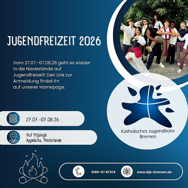 Neugierig geworden? Alle Informationen zur Fahrt und der Link zum Anmeldeformular stehen auf der Internetseite www.kjb-bremen.de. Bei Fragen zur Anmeldung, Überweisungen oder zur Jugendfreizeit bitte eine E-Mail an fsj[at]kirchenamt-bremen.de schreiben.