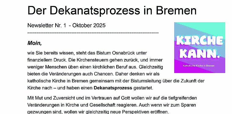 Bistum Osnabrück und Bremer Katholiken verständigen sich auf "Kontrakt" zum Dekanatsprozess